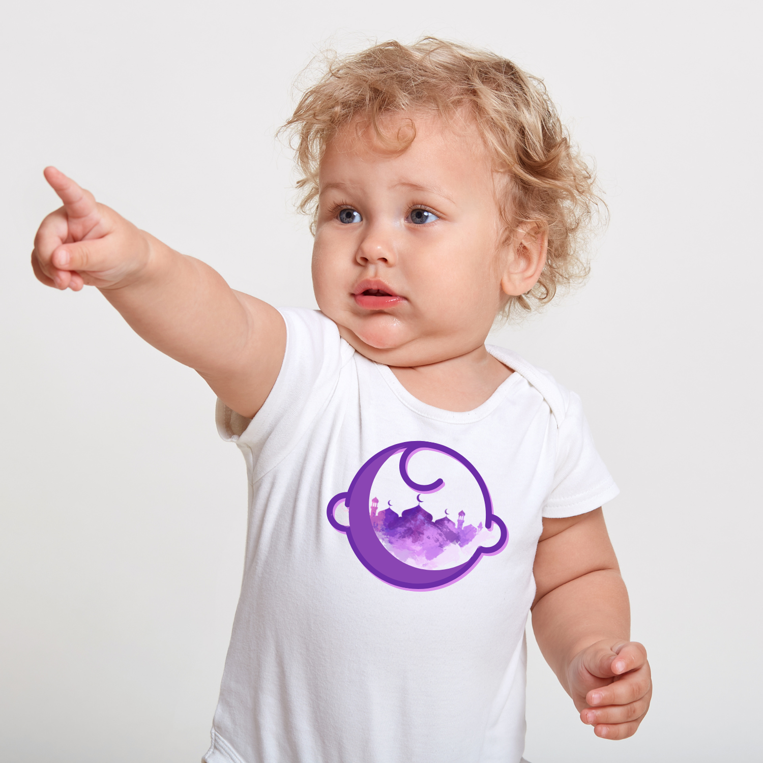 Soft, breathable bodysuit with a quiet, whimsical print at the chest. The lightweight combed ringspun cotton feels gentle against delicate skin while the ribbed knit binding around the neck and leg openings lets tiny arms move freely. Side seams keep the shape through washes, and matching snaps at the crotch make diaper changes quick and fuss-free. The subtle moonlit skyline illustration adds a cozy, storybook touch — easy to layer under sweaters or pair with baby leggings for day-to-day adventures or calm evenings at home.